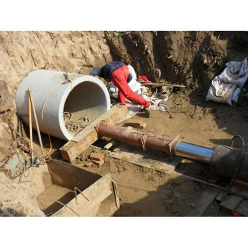 補充資料:頂管方案一般是先頂鋼筋砼套管,然后在套管內(nèi)穿過工程管——鋼管。在頂管過程中,要充分考慮可能遇到的障礙,如孤石等。以往的經(jīng)驗曾經(jīng)有遇到障礙無法穿過而整個管道廢掉的先例,特別是小直徑管管前無法挖土?xí)r更容易出現(xiàn)這種情況。所以在頂管施工前,一定要弄清頂管處的地質(zhì)情況。對遇到障礙時要有充分可靠的處理方案。