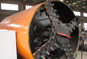 土壓平衡式頂管是以土壓平衡為工作原理的一種頂管施工方法.在工作時(shí),通過(guò)大刀盤(pán)及仿形刀盤(pán)對(duì)機(jī)頭正面土體的全端面切削,利用主頂設(shè)備把機(jī)頭向前推進(jìn),把切削下來(lái)的泥土擠進(jìn)機(jī)頭土倉(cāng)內(nèi),通過(guò)調(diào)節(jié)機(jī)頭頂進(jìn)速度和螺旋輸送機(jī)的轉(zhuǎn)速來(lái)控制土倉(cāng)內(nèi)的壓力,土倉(cāng)內(nèi)的壓力來(lái)平衡地下水的壓力和機(jī)頭前方的土壓力.